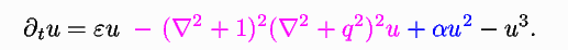 The equation is a modified version of the Swift-Hohenberg model constructed to develop quasicrystalline patterns, cf. the discussion in Section 4.3. You can find out more about quasicrystals on the web site of Ron Lifshitz, who developed this model with Dean Petrich.